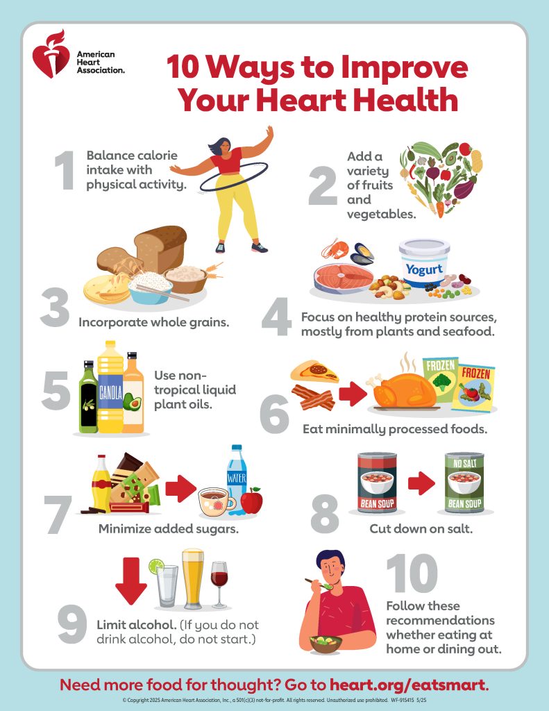5 Heart-Healthy Eating Habits: https://www.heart.org/en/healthy-living/healthy-eating/eat-smart/nutrition-basics/5-heart-healthy-eating-habits