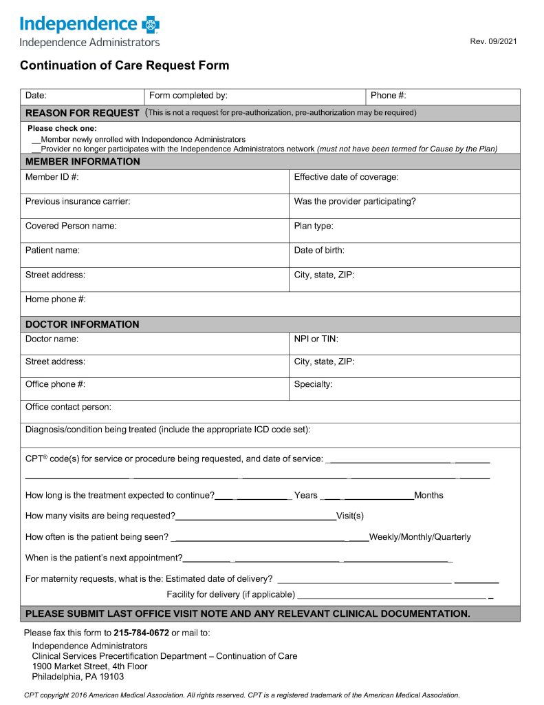 UPDATE 1/13/26: Continuation of Care Request Forms