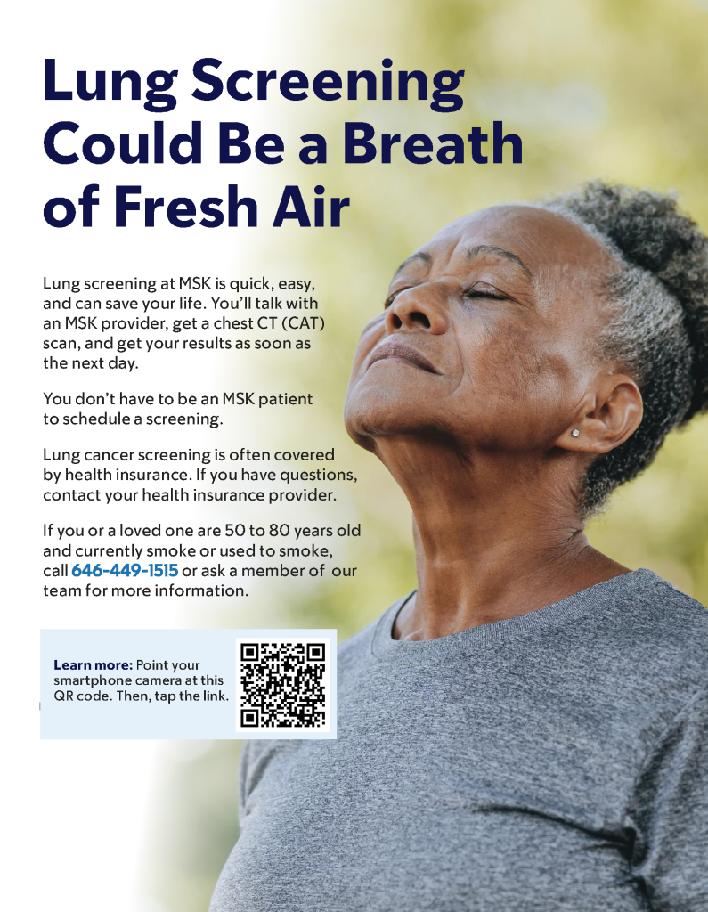 To learn more about Lung Cancer Screenings, and to take a two-minute quiz to see if you are eligible for a Lung Cancer Screening, visit https://www.mskcc.org/cancer-care/risk-assessment-screening/screening/lung